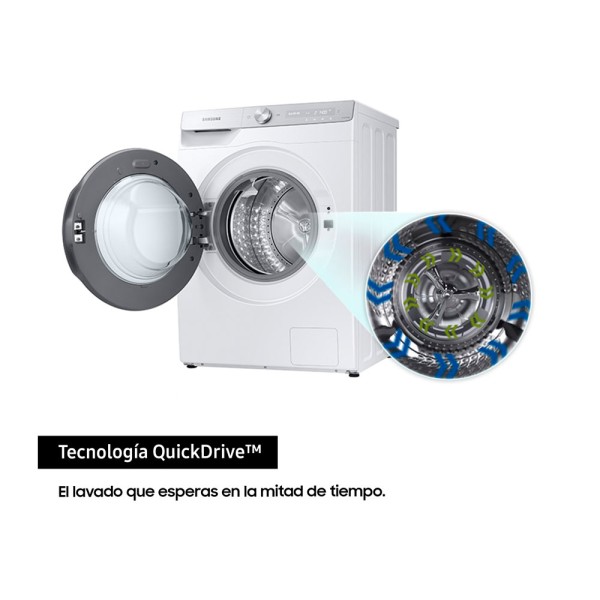 El lavado que esperas en la mitad de tiempo. Gracias al doble giro de su tambor, Samsung ha reducido el tiempo de lavado a la mitad manteniendo unos resultados excelentes.