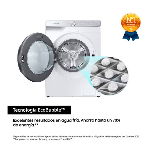 Disfruta del lavado más eficiente, incluso a baja temperatura*, con la tecnología EcoBubble™. El detergente se convierte en burbujas, que penetran en los tejidos más rápido y eliminan más fácilmente la suciedad, mientras ahorran energía y protegen su color y textura**.
